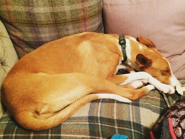 bayLee the coding #podenco having a pythonic snooze in the van #codenco #dogcation #motorhomedogs #rvdogs #holidayswithdogs