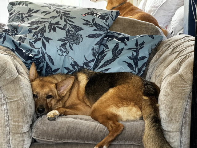 While I make my way very slowly back to Burnley, Caoimhe has switched off the German Shepherd guarding instinct to get in some rest. How gorgeous?