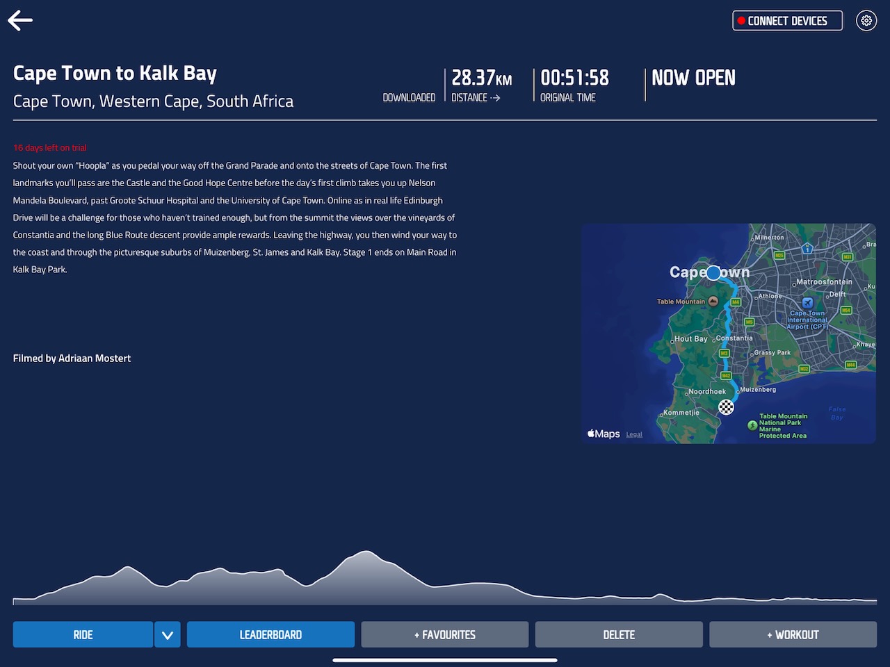 This page looks at the Cape Town to Kalk Bay route on Fulgaz by Adriaan Mostert. Read on for route metrics, description, images and my own ride data.