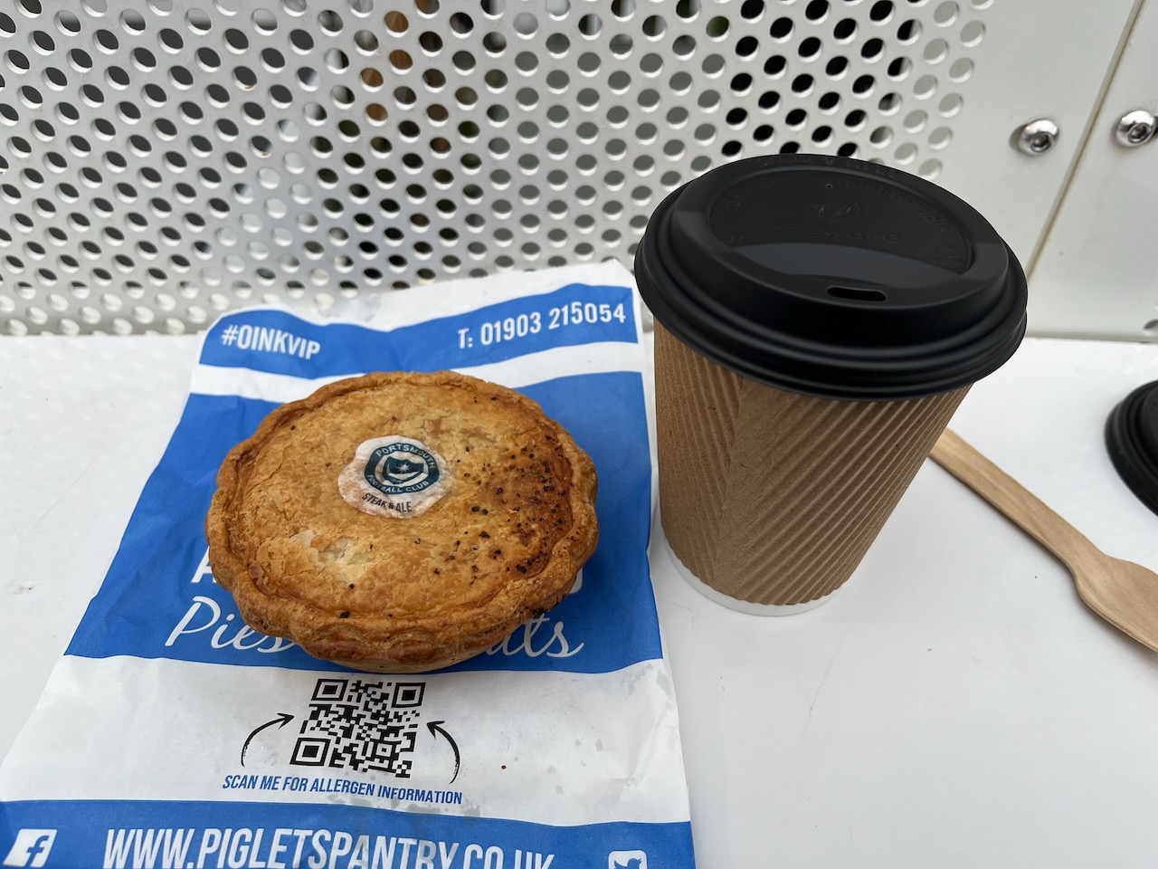 As stadium food goes, the offer was pretty good. I tried the Steak and Ale Piglet's Pie, which was really excellent and well worth the Β£4.80 compared to some stadium food. I think my Bovril was Β£3.00 - expensive for a mug of hot water with a stock cube in it, but no more so than some of the other stadiums I've visited recently.