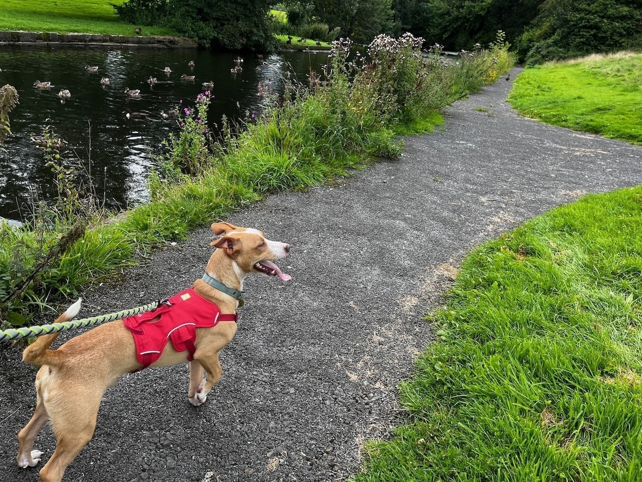 Itβs taken a long time to get him well enough - but here is Fearghus π enjoying his lunchtime walk with the ducks.