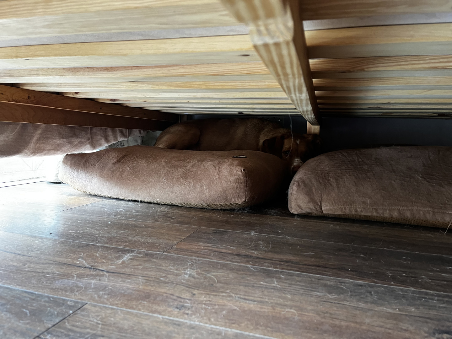 With all of the Podenco blanket dwelling and hide and seek, it's really not unusual to lose a dog or two in our house. Here is a prime example of what can only be described as 'shithousery' from Stevie last night. #podencos #dogsOfMastodon