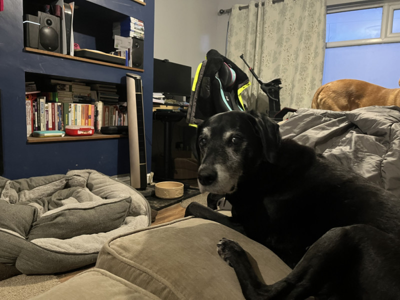 Tue 25 Feb 2025 19:02 | in Canine Children Mustang Stevie by Lee Perry at π Today's centrefold is Professor Mustang, climbing up for a cuddle at almost 14, while Stevie photobombs with his backside. Images