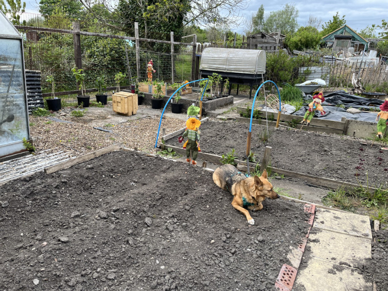 ๐ชดAn hour at the allotment turned into 2 when I realised the bed I wanted to put my fruit bushes into was already full of, erm, fruit bushes. Potted on rather than waste - Princess Caoimhe on sentry on the potatoes throughout.