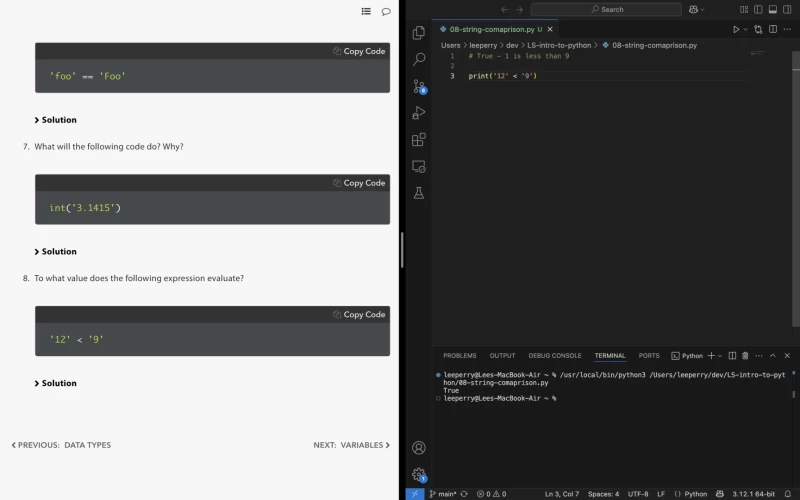 Fairly basic stuff, but completed the 'Basic Operations' exercise in LaunchSchool's 'Introduction to Programming with Python' book. Largely types, casting, comparators.