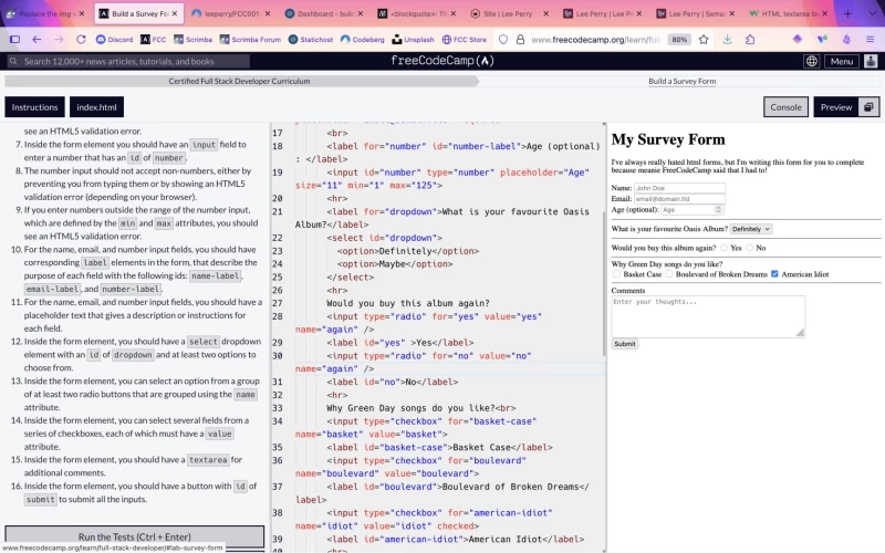 Repo - https://codeberg.org/leeperry/FCC002-Build-a-survey-form